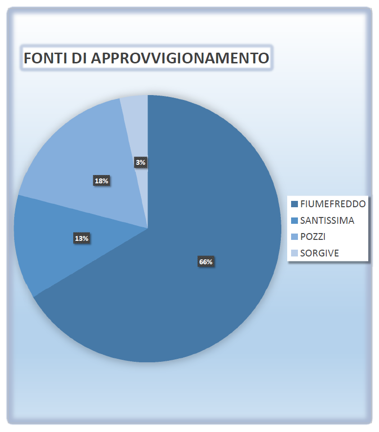 Integrano la portata all’utenza un sistema di Pozzi e di Sorgive, con relativi impianti di sollevamento, dislocati su tutto il territorio Comunale, oltre a piccoli acquedotti esterni e relative condotte di derivazione, a servizio o integrazione della distribuzione in varie zone.